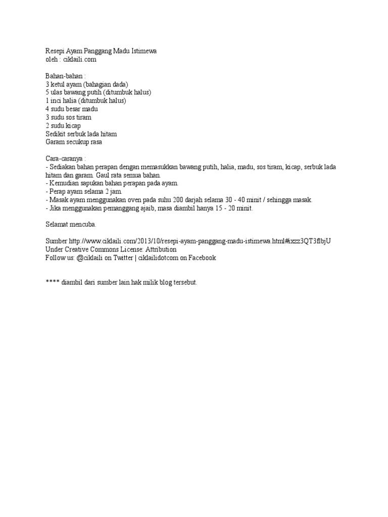 Resepi Ayam Madu Yang Sedap Dan Mudah Untuk Anda Cuba Sekejung Com from 1.bp.blogspot.com Kali ini saya ingin berkongsi dengan anda semua satu resepi yang menarik iaitu ayam panggang madu istimewa. Memiliki aroma bakar yang lezat serta bumbu yang khas membuat ayam panggang menjadi jenis masakan yang populer. Resepi ayam panggang madu dan ayam panggang oven istimewa. Tambahan madu membuat rasanya jadi manis dan berpadu dengan gurih endeus! Resepi ayam panggang kenny roggers (ayam bakar madu). Resep ayam oven ini merupakan olahan resep ayam oven madu : Anda patut mencuba resepi yang kami kongsikan di bawah ini iaitu ayam panggang madu lada hitam. Anda patut mencuba resepi yang kami kongsikan di bawah ini iaitu ayam panggang madu lada hitam.